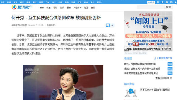 【腾讯网】何开秀:互生科技配合供给侧改革 鼓励创业创新
