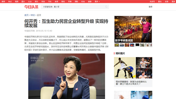 【今日头条】何开秀:互生助力民营企业转型升级 实现持续发展